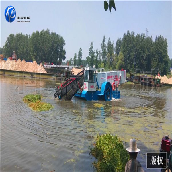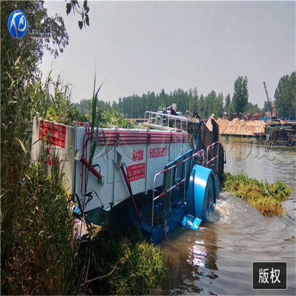 本公司生产的全自动割草船是水草水葫芦等水面杂草的克星!前收集臂自动收割,两侧加侧收集臂带轮刀,能更好切断杂草的根部。带有储料仓,小型的储草量在8个立方左右,自动卸料。岸边放一辆小货车,可以直接拉走,完全实现自动化,效率更高更快。